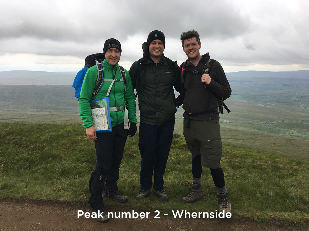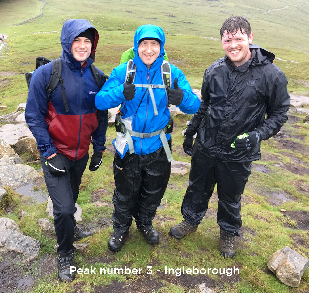 Setting off in sunshine at 7am from Horton in Ribblesdale, the team climbed straight up Pen-y-Ghent, before making the 12-mile trek to the top of the next (and tallest) peak, Whernside. It was at this point the weather turned, waterproofs were put on and the team continued on down Whernside and up the very steep ascent of Ingleborough, the last of the 3 peaks. From there was then a leg sapping 6-mile hike back to the start, with the sun re-emerging as they crossed the finish line. At 11 hours 36 minutes, the team came inside the 12-hour target time, weary but uninjured after 24.5 miles of challenging but beautiful Dales and 1470m of elevation!