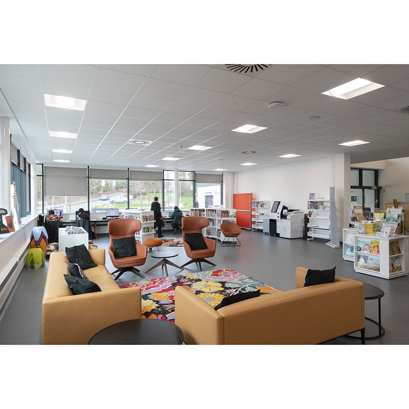 The system consists of Ecophon Advantage™ A tiles and Connect™ grid system with an approximate weight of 2,5 kg/m². The tiles are manufactured from high density glass wool. The visible surface is a high quality batch-painted glass tissue in white colour and the back of the tile is covered with glass tissue. Available with natural edges or with edges primed. For best performance and system quality use Connect™ grid and accessories. The Connect™ grid is manufactured from galvanized steel.