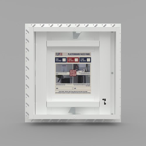 Exitile FF/060/PD/BF/BL is a plasterboard faced FlipFix Access Panel with a beaded frame, 1 hour fire rated. This panel is designed to fit into the structural membrane of a joint-less plasterboard ceiling/wall system.