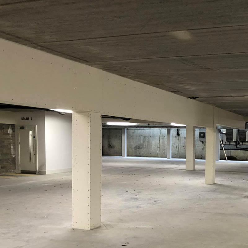 Kemwell Corex is an A1 class non-combustible plasterboard covered with glass fibre mats on both sides. It provides high-performance fire resistance and protects structures from fire for a long period of time. It can be used on the perimeter steels that are exposed to the elements for up to 6 months prior to the cladding going on.
