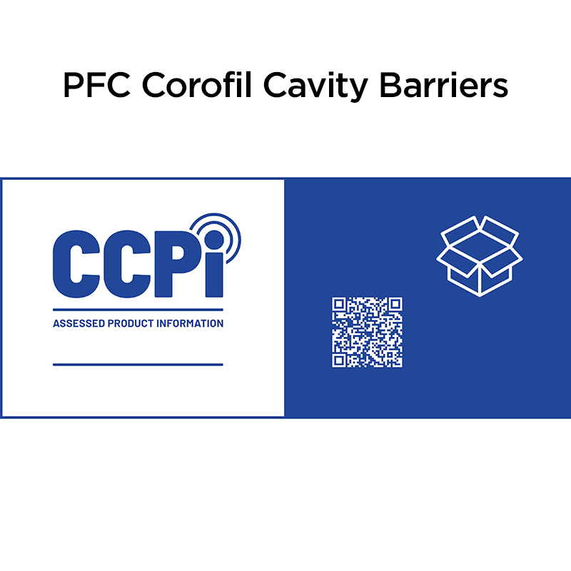 PFC Corofil Cavity Fire Barrier CCFB is a full fill cavity fire barrier manufactured from a 100mm thick low density stone wool product installed between the inner and outer substrates of a masonry façade to reinstate the fire resistance performance of the cavity. The lighter density allows greater scope for compression when installing within brickwork cavities when using wet mortar.