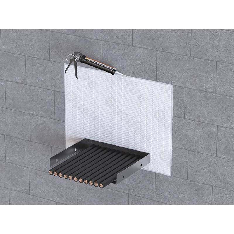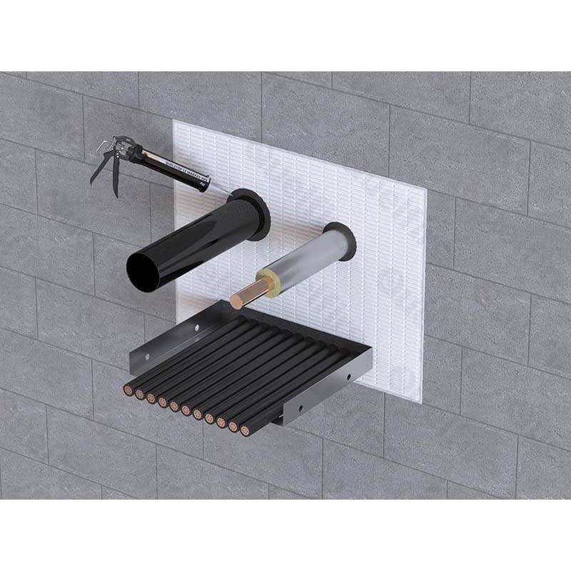 QuelStop CE Marked HPE Graphite Sealant may be used for sealing around services such as cable, cable bundles, trays, ladders, combustible pipes, combustible insulations, either as part of a seal directly within the wall or floor substrate or as part of a QuelStop Fire Batt Seal.