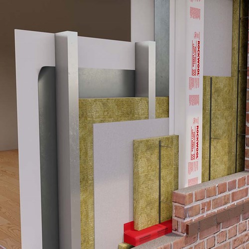 RAINSCREEN DUO SLAB is a dual-density insulation specifically developed for use within ventilated cladding systems, as well as sealed systems such as curtain walling. Once installed, the robust outer surface of the slabs, in combination with a factory-applied water repelling agent, acts to resist rain ingress during construction.