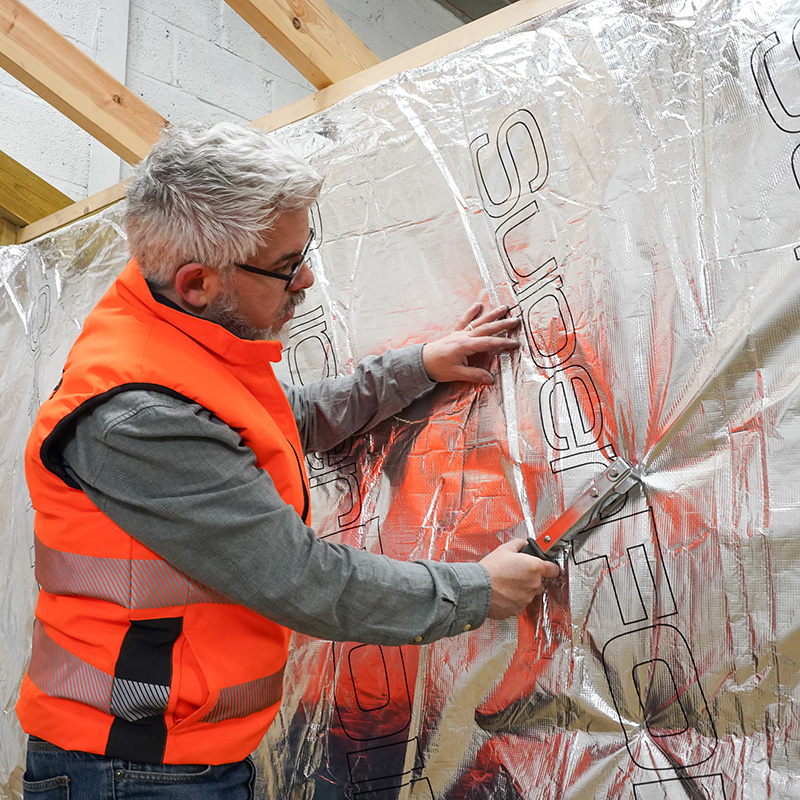 Additionally, by installing as a continuous layer and sealing fully with SuperFOIL Tape, SuperFOIL insulation provides an effective air and vapour barrier. Controlling air leakage such as draughts is paramount to the achieve high levels of energy efficiency.