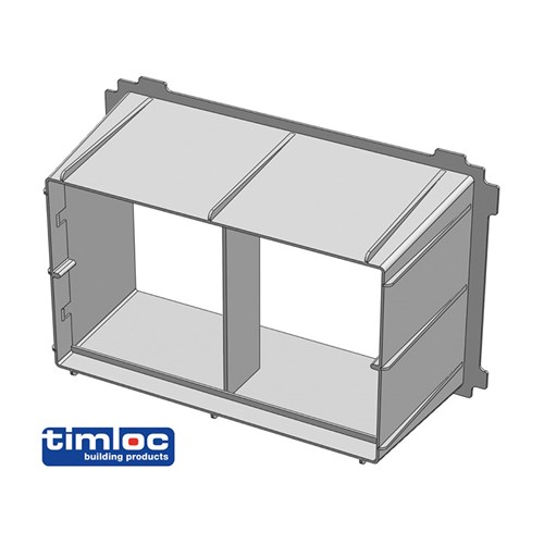 - 1202/2 Cavity Sleeve - Suits a stack of two interlocked Timloc airbricks 9” x 6” and provides a maximum equivalent area of 12300mm2.