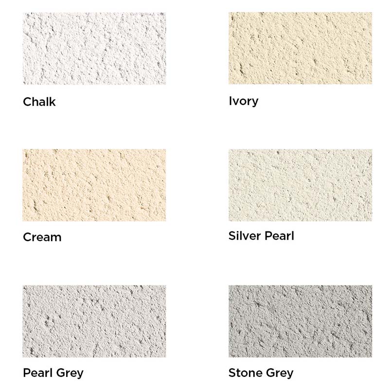 - Finished with either a scraped texture, sprayed roughcast texture or can be dry dashed