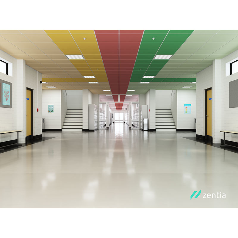 Aruba Max is a robust variation of Zentia’s popular Aruba suspended ceiling tile, designed for interiors that need higher technical performance. With an increased tile thickness, Aruba Max provides enhanced acoustical performance, making it an ideal suspended ceiling for classrooms.