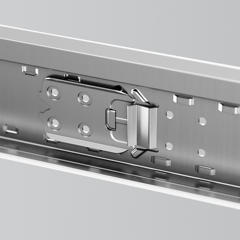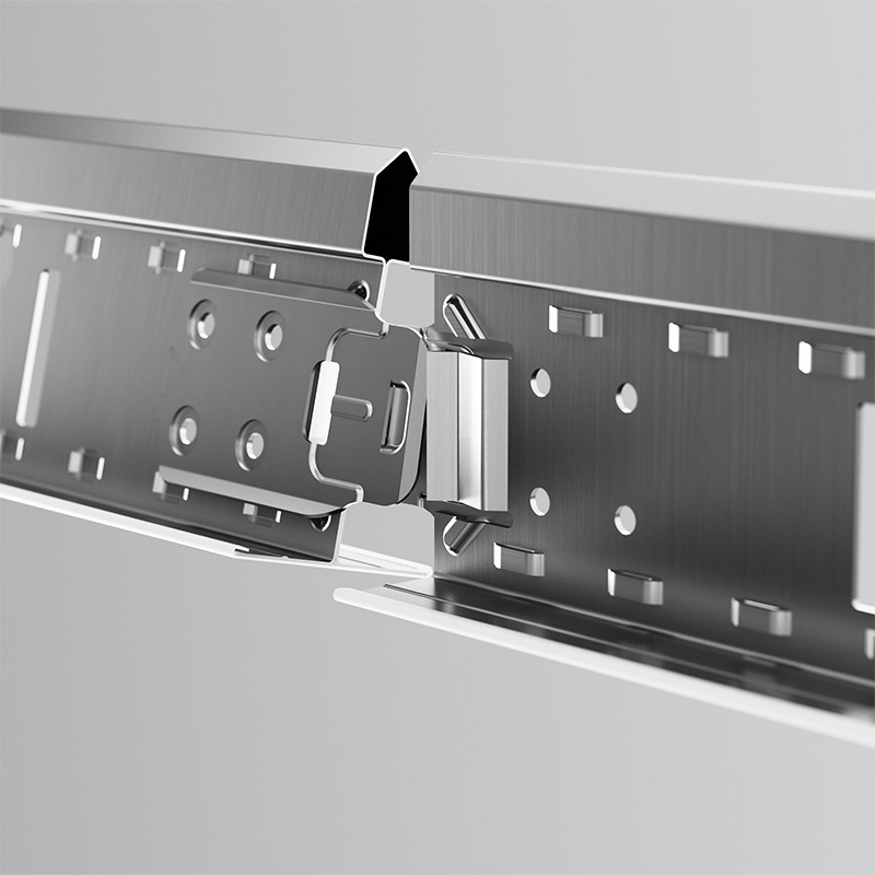 One clip, two systems. Gridline 24’s innovative new stainless steel clip design makes installing main runners and cross tees easier than ever before. Connecting grid components with a firm and audible click, Gridline 24 is compatible with both butt cut and joggled systems.