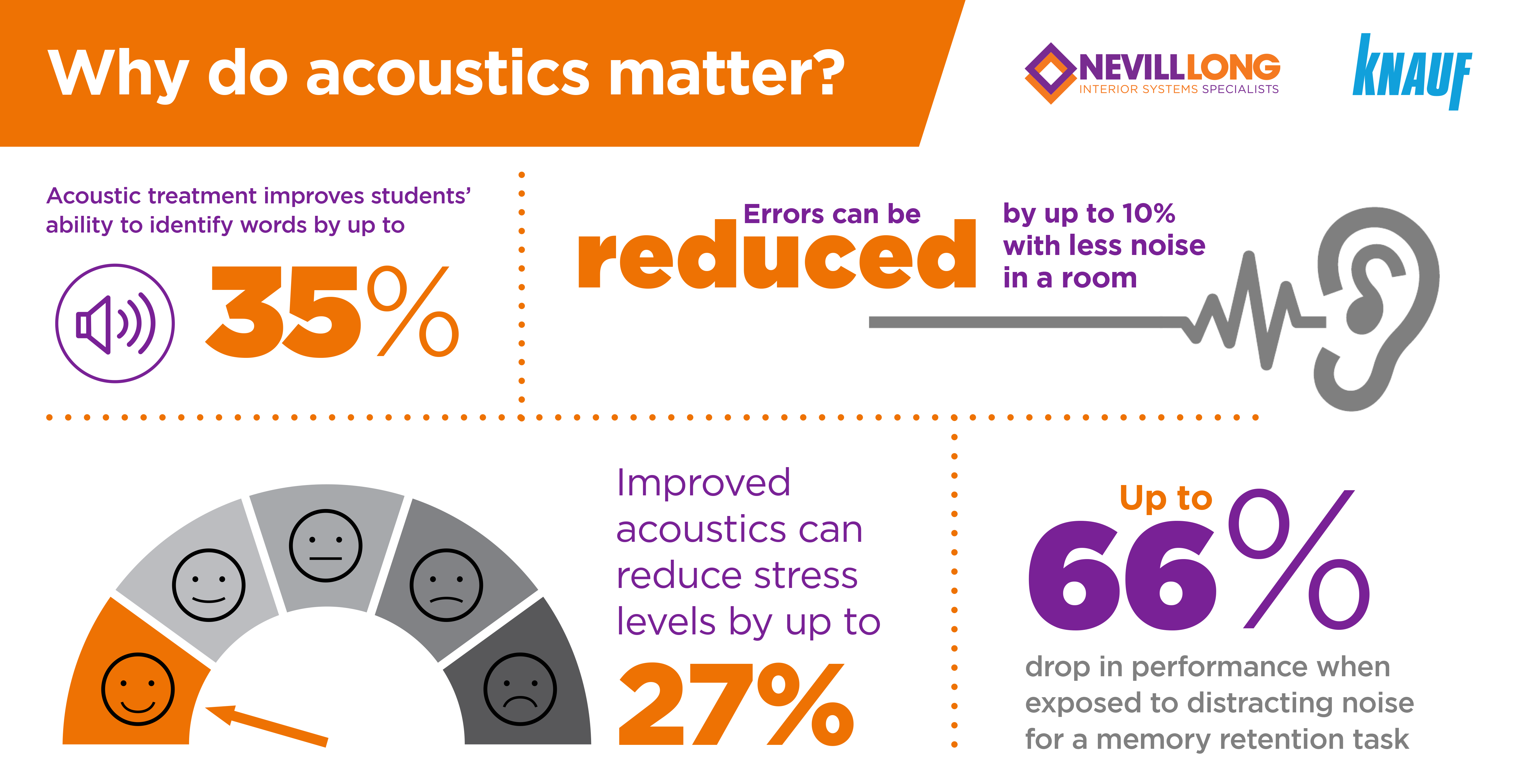 Acoustic ceilings can improve students’ ability to identify words correctly by up to 35%3. This makes a significant difference for all children particularly those with learning difficulties or where English is their second language.