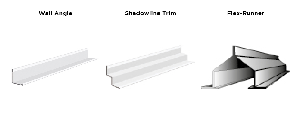 Shadowline Trim - Used as an alternative to Wall angle, the Shadowline trim is a stepped trim to be installed around the perimeter of the room. It creates a border around the edge of a ceiling.