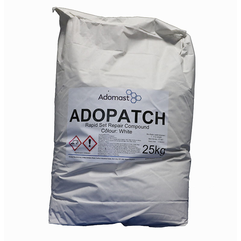 Low shrink repair mortar. Adopatch provides rapid set high strength repairs to precast concrete units, damaged in situ concrete, floors & steps.