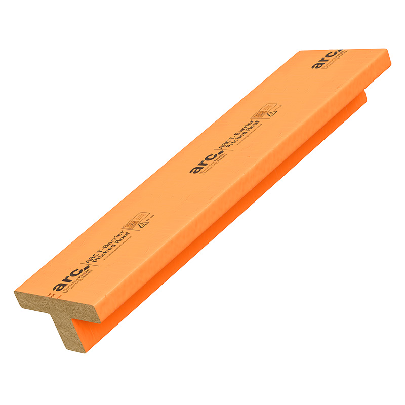 The ARC T-BarrierĀ® Pitched Roof is a fully tested IFC certificated cavity barrier with a stalk to ensure correct positioning of the cavity barrier, specifically designed for use at the top of the party wall brickwork.