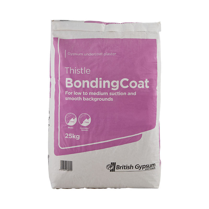Thistle BondingCoat is an ideal undercoat plaster for smooth or low suction backgrounds. It's easy to spread and finish thanks to its fine mix and good workability, making it perfect for new walls, or for making good old walls before skimming with British Gypsum finishing plasters.