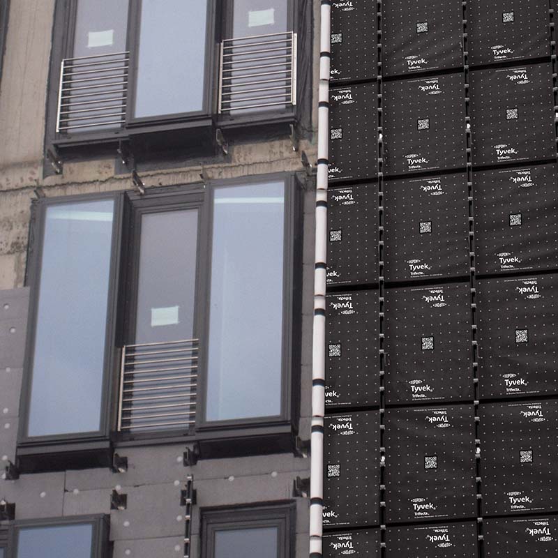 Tyvek® Trifecta™ doesn’t produce droplets or emit smoke when subjected to flame, making it a great choice for fire risk averse build-up designs. It is engineered for fast and easy installation with non-combustible A2 tape.