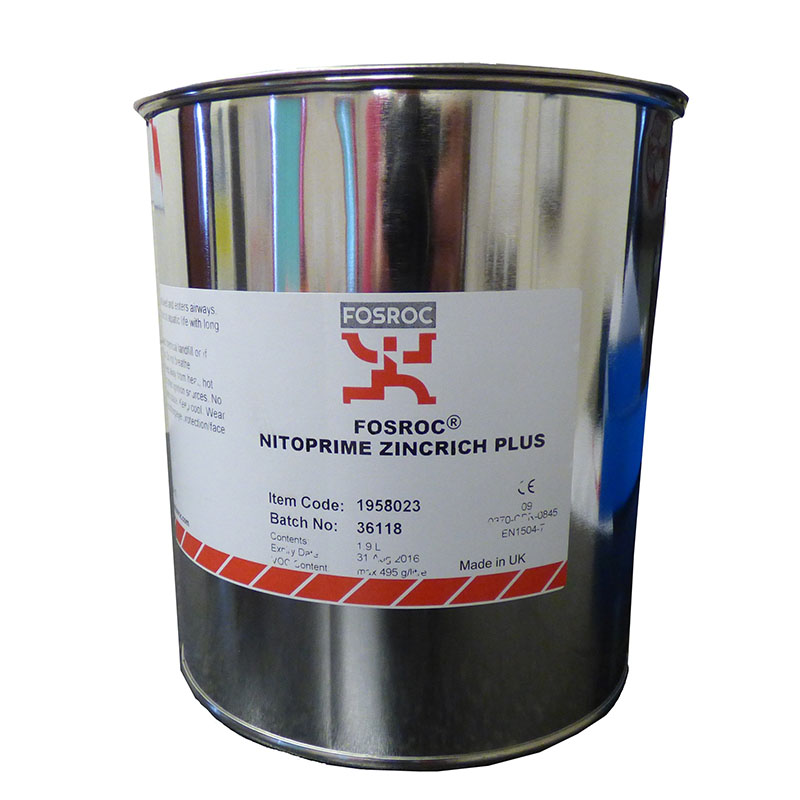 Nitoprime Zincrich Plus is the recommended anti-corrosion primer for exposed steel reinforcement for use with Fosroc concrete repair mortars. It is fully compatible with all Renderoc mortars and fluid micro-concretes.