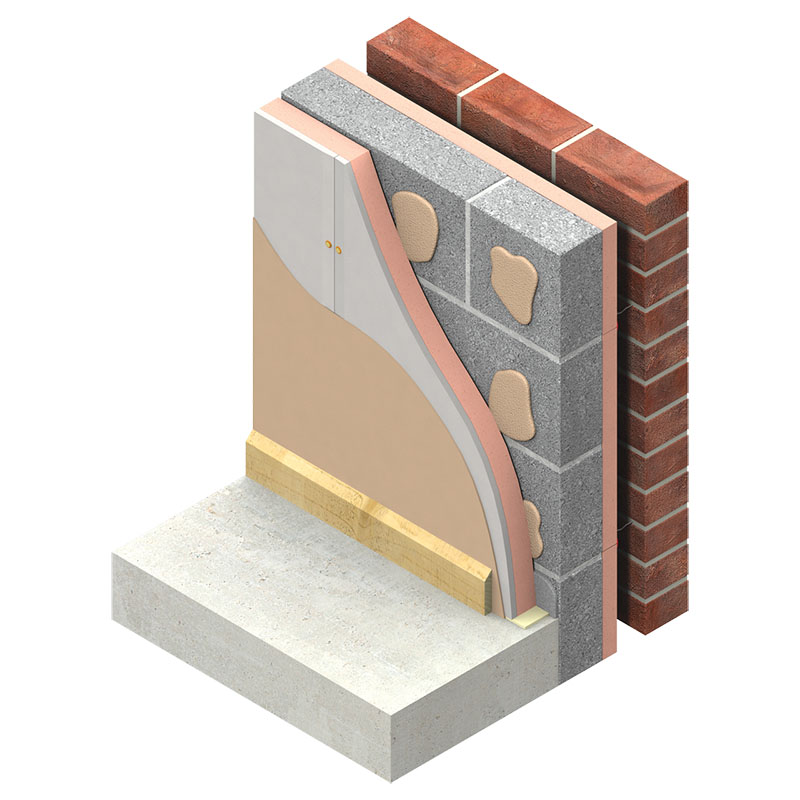 Kingspan Kooltherm K118 Insulated Plasterboard is a premium performance insulation with a fibre-free rigid thermoset phenolic core. As part of Kingspan's Kooltherm K100 range, it provides a thermal conductivity of just 0.019 W/mK across all thicknesses. Insulation, dry-lining and vapour control in one board.