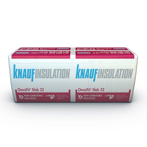 OmniFit® Slab 32 is a glass mineral wool slab, designed primarily for use as the inner leaf insulation between light steel frame studwork in a rainscreen façade system or in a steel frame construction with masonry outer leaf. It offers the best thermal conductivity of 0.032 W/mK in the Knauf Insulation range, combined with acoustic performance.
