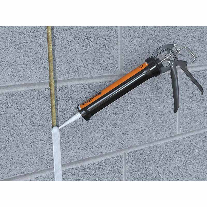 QuelStop Intumescent Acrylic Sealant is a fundamental part of the QuelStop Fire Batt System and should be applied to all cuts, joints and exposed edges of the batt and can also be used for sealing around services such as cable, cable bundles, trays, ladders and non-combustible pipes, either as part of a seal directly within the wall substrate or as part of a QuelStop Fire Batt Seal.