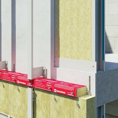 RAINSCREEN DUO SLAB is a dual-density insulation specifically developed for use within ventilated cladding systems, as well as sealed systems such as curtain walling. Once installed, the robust outer surface of the slabs, in combination with a factory-applied water repelling agent, acts to resist rain ingress during construction.