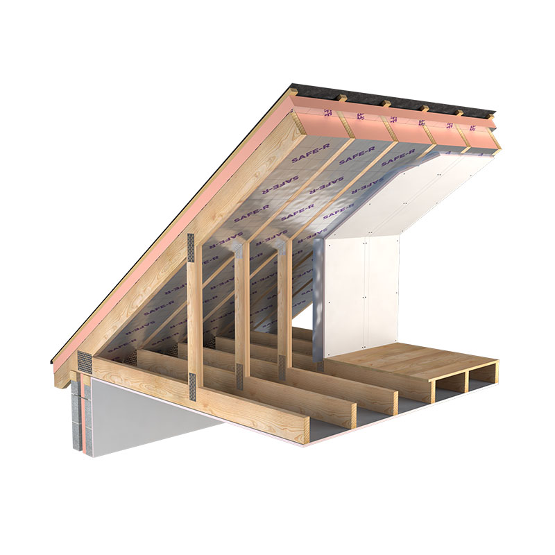 Safe-R 019/MA is a superior performance rigid phenolic insulation with enhanced fire performance. SR019/MA has composite foil facings on both sides and has a thermal conductivity of 0.019 W/ mK, delivering improved U-Value. This insulation board is suitable for framing, floors, pitched roof and soffits.