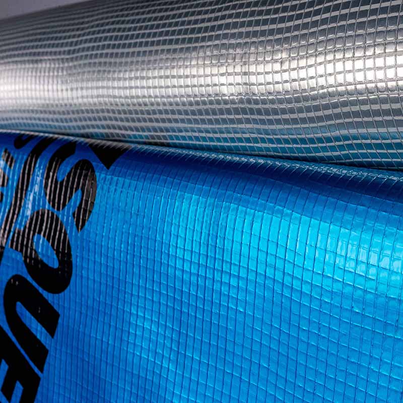 Visqueen Gas Barrier is a multi-layer reinforced polyethylene gas barrier with a 20 micron aluminium foil. The barrier is coloured blue on the upper surface and silver on the reverse. The product is supplied in single wound rolls (not folded), 2m x 50m.