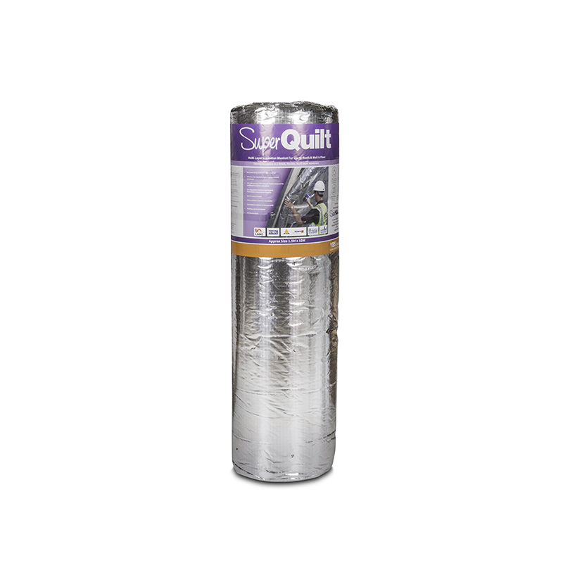 SuperQuilt is a very flexible, easy to fit, multilayer insulation thermally tested in accordance with EN16012 achieving a high thermal resistance of 2.50m2K/W for SuperQuilt accompanied by a 25mm air cavity either side of the material.
